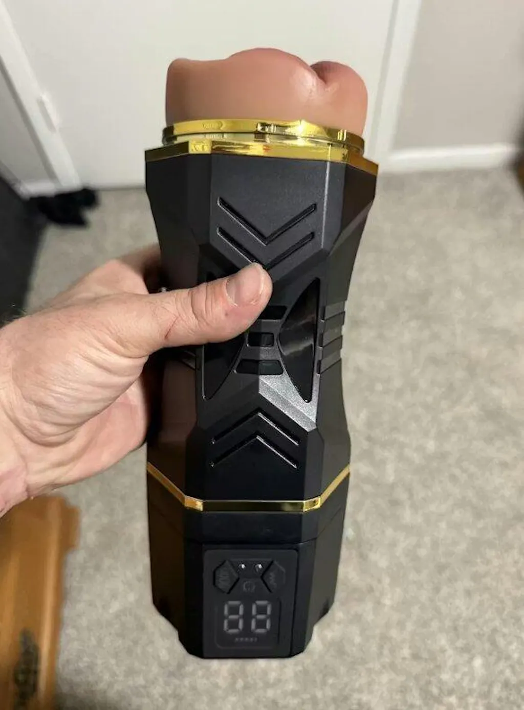 Stel je dit voor: je bent eindelijk thuis na een lange dag, de lichten gedimd, de telefoon op 'Niet storen' en Kapitein Titan wacht op het nachtkastje als die ene vriend die altijd precies weet hoe hij je goed moet afmaken. Dit is niet de gemiddelde sleeve; hij is gemaakt om je te berijden alsof ze bovenop zit en het echt meent. Elke stoot gaat gepaard met een hebzuchtige knijpbeweging, elke trekkracht levert een diepe, gelaagde zuigkracht op die je laag voor laag opentrekt totdat het de plek vindt waar je tenen gaan krullen. Begin langzaam met de zachtere vibraties om jezelf voor de gek te houden, en ga dan door alle negen modi totdat je om genade smeekt, terwijl het ritme zich blijft opbouwen, meedogenloos en verslavend. Het kanaal voelt idioot echt aan: warm, strak en pulserend als in het echt. En ja, hij is IPX7 waterdicht, dus ga ermee onder de douche als de stemming om 2 uur 's nachts toeslaat. Geen excuses, geen opruimdrama, alleen jij, Kapitein Titan, en het soort afwerking waardoor je naar het plafond staart en je afvraagt hoe het in vredesnaam zo goed is geworden. Je uithoudingsvermogen kan eronder lijden, maar je nachten hebben zojuist een serieuze upgrade gekregen.